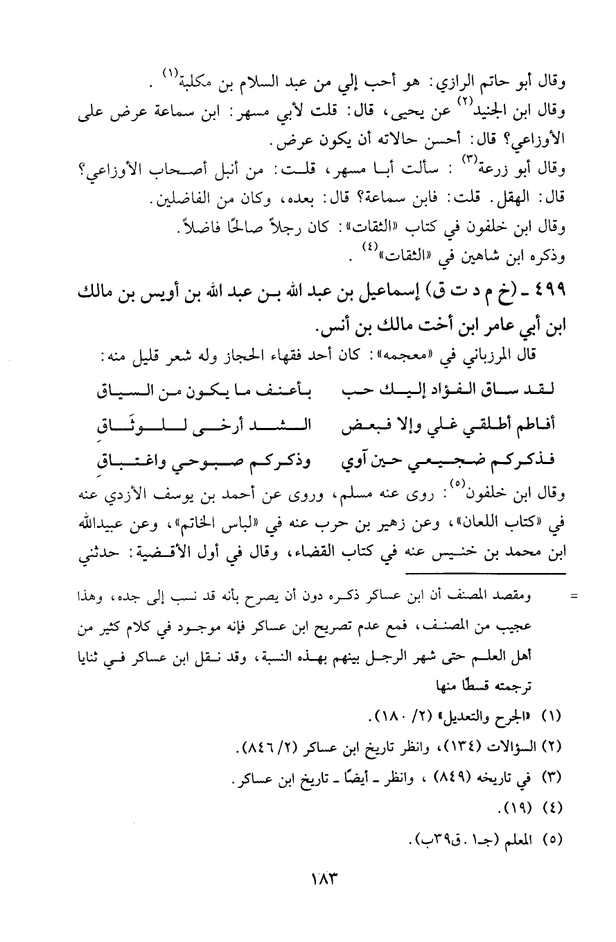 ( 2 ) السؤالات ( 134 ) ، وانظر تاريخ ابن عساكر ( 2 / 846 ) .