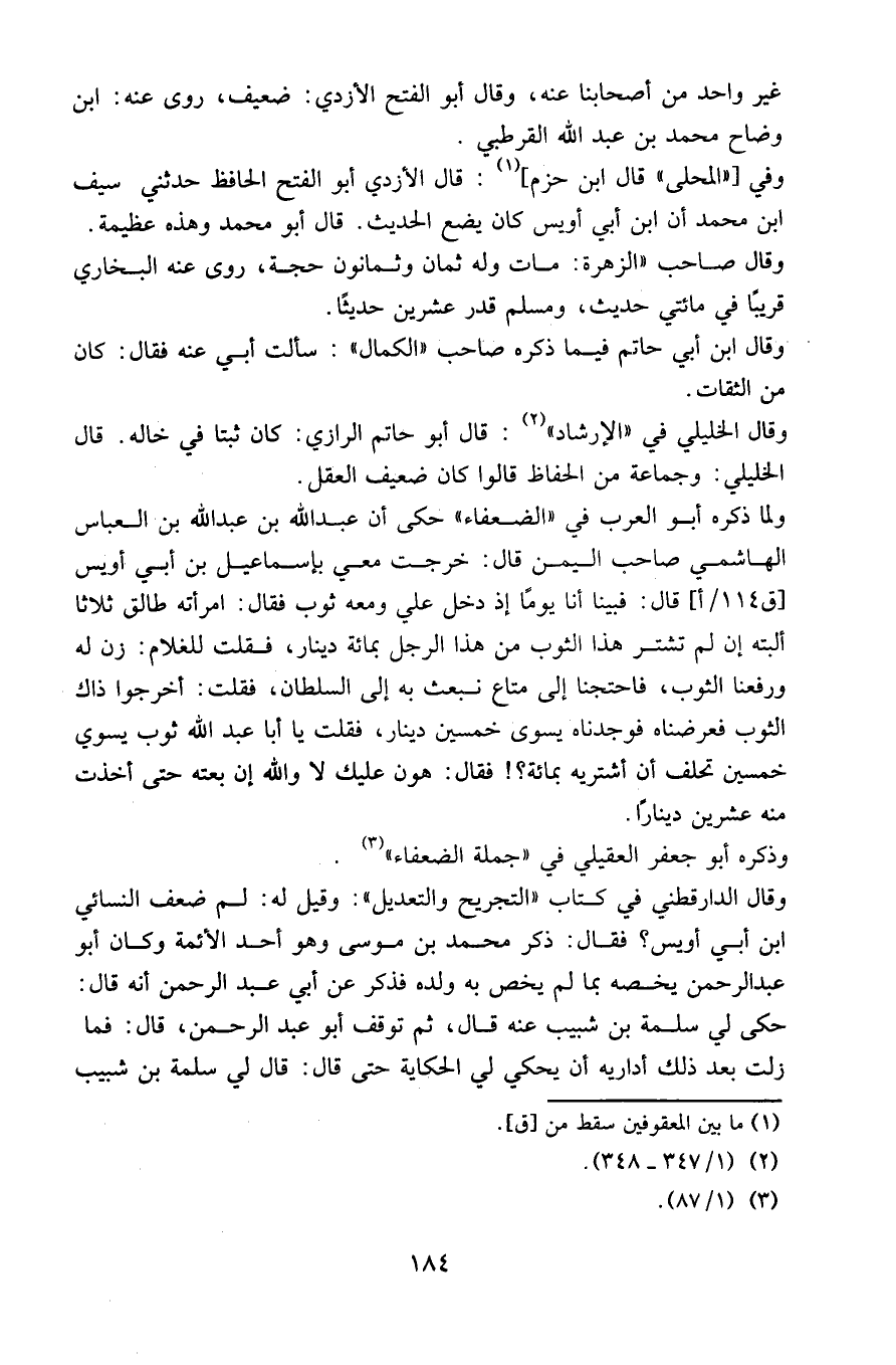 ابن أبي أويس ؟ فقال : ذكر محمد بن موسى وهو أحد الأئمة وكان أبو