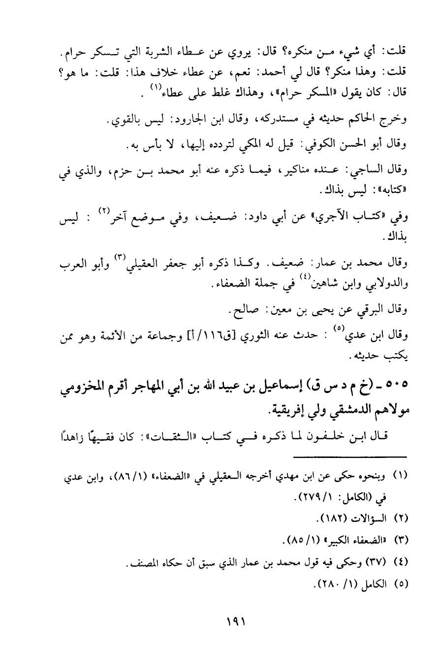 ( 1 ) وبنحوه حكى عن ابن مهدي أخرجه العقيلي في ( الضعفاء ) ( 1 / 86 ) ، وابن عدي