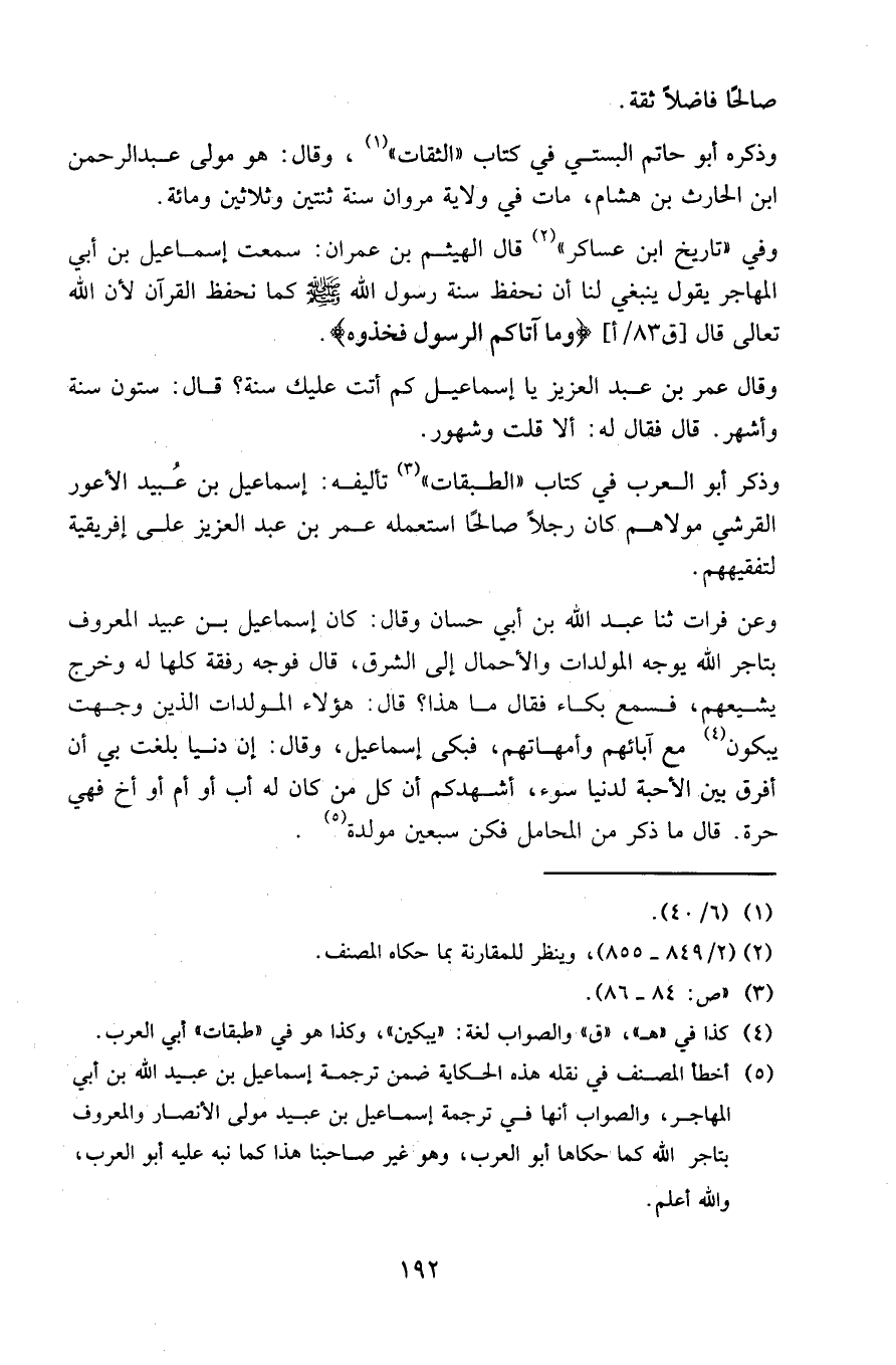 وفي ( تاريخ ابن عساكر ) ( 2 ) قال الهيثم بن عمران : سمعت إسماعيل بن أبي