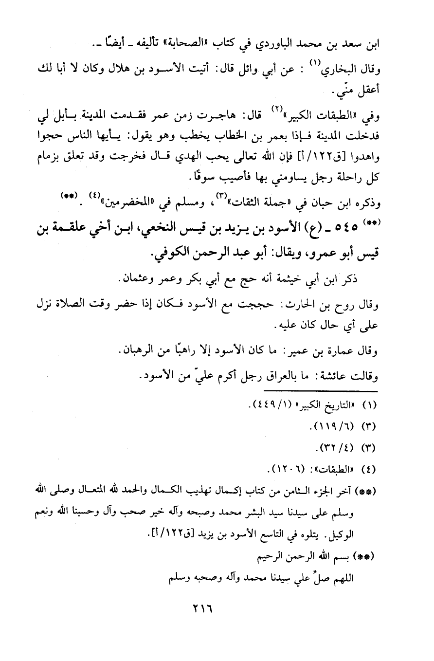 ( * * ) آخر الجزء الثامن من كتاب إكمال تهذيب الكمال والحمد لله المتعال وصلى الله