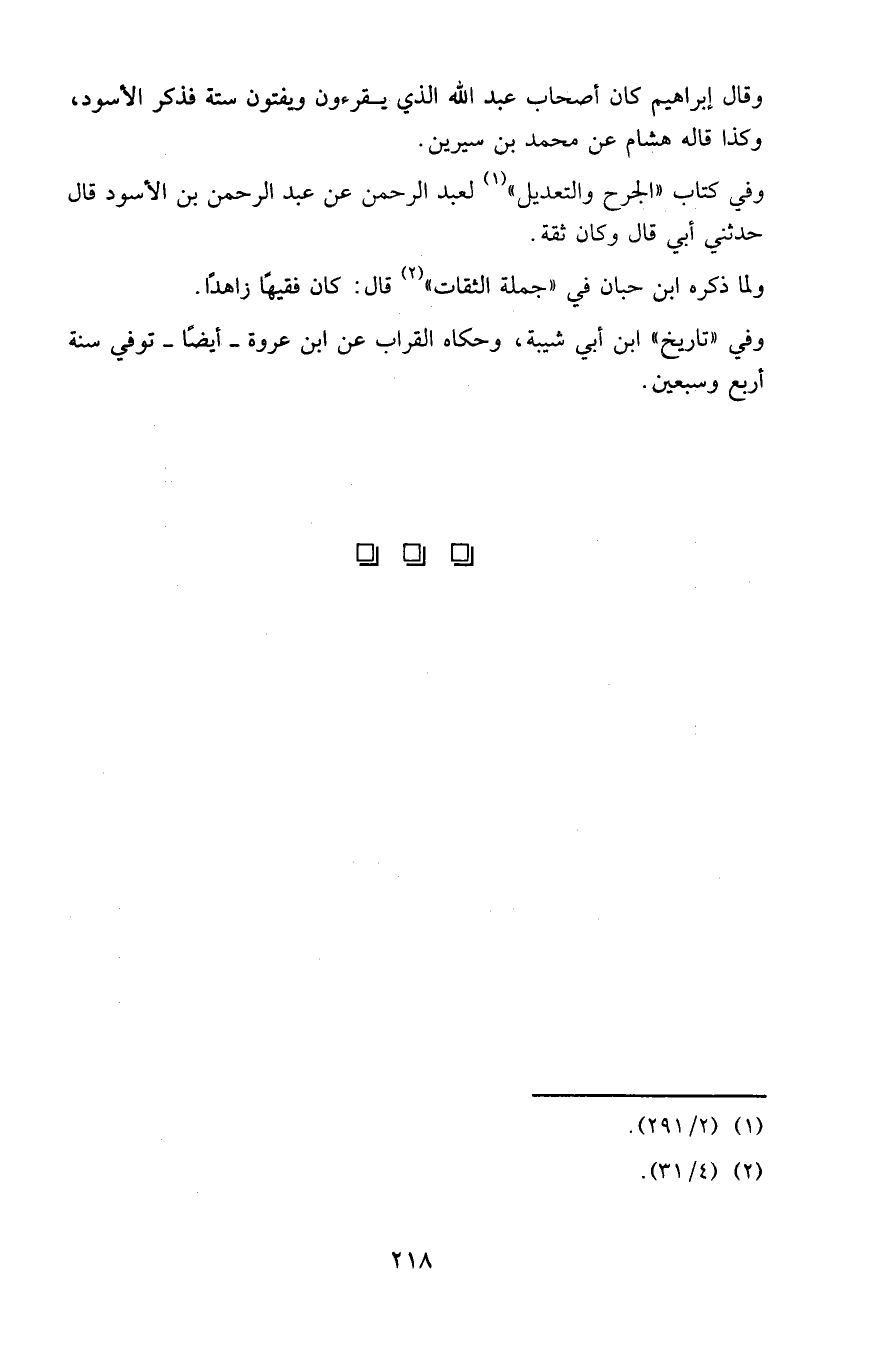 وفي كتاب ( الجرح والتعديل ) ( 1 ) لعبد الرحمن عن عبد الرحمن بن الأسود قال