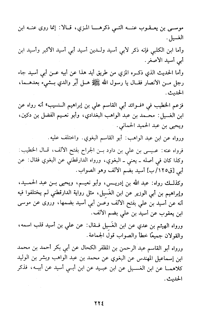 أنه عن أسيد بن علي بفتح الألف وعن أبي أسيد بضمها ، وروى عن موسى