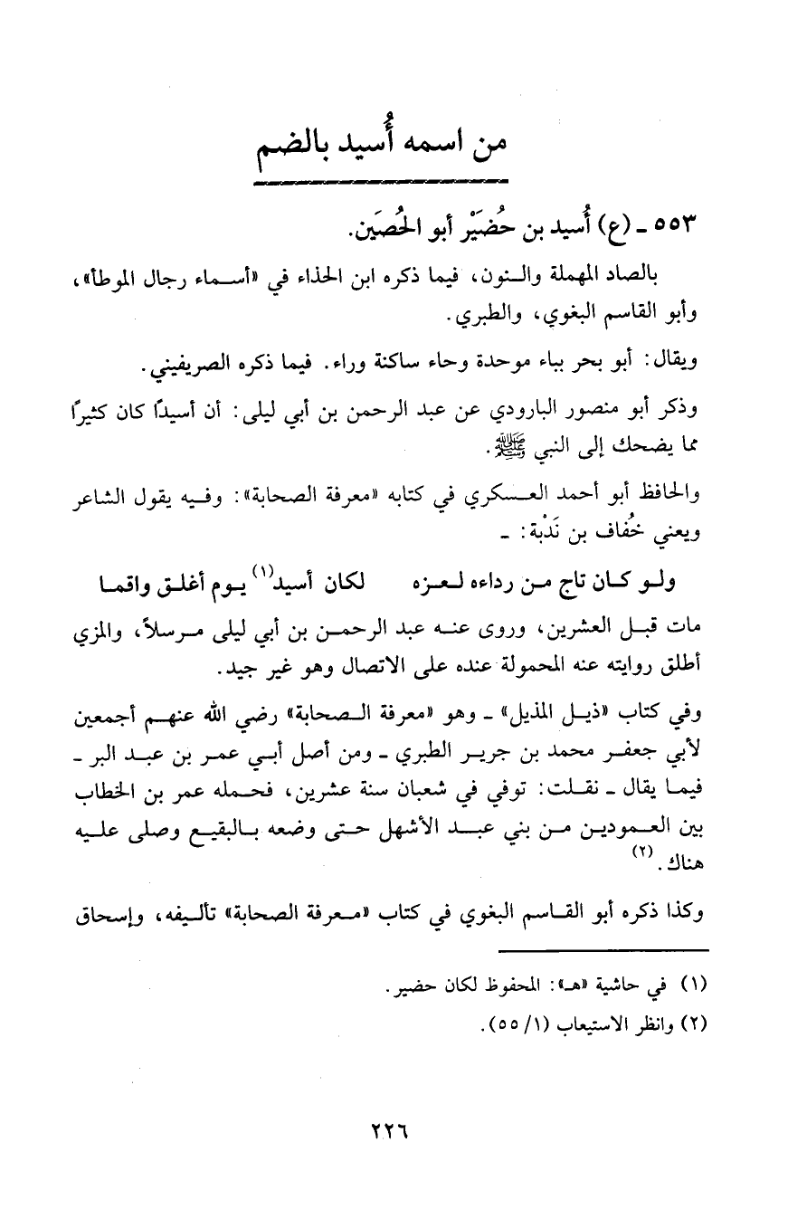 553 - ( ع ) أسيد بن حضير أبو الحصين .