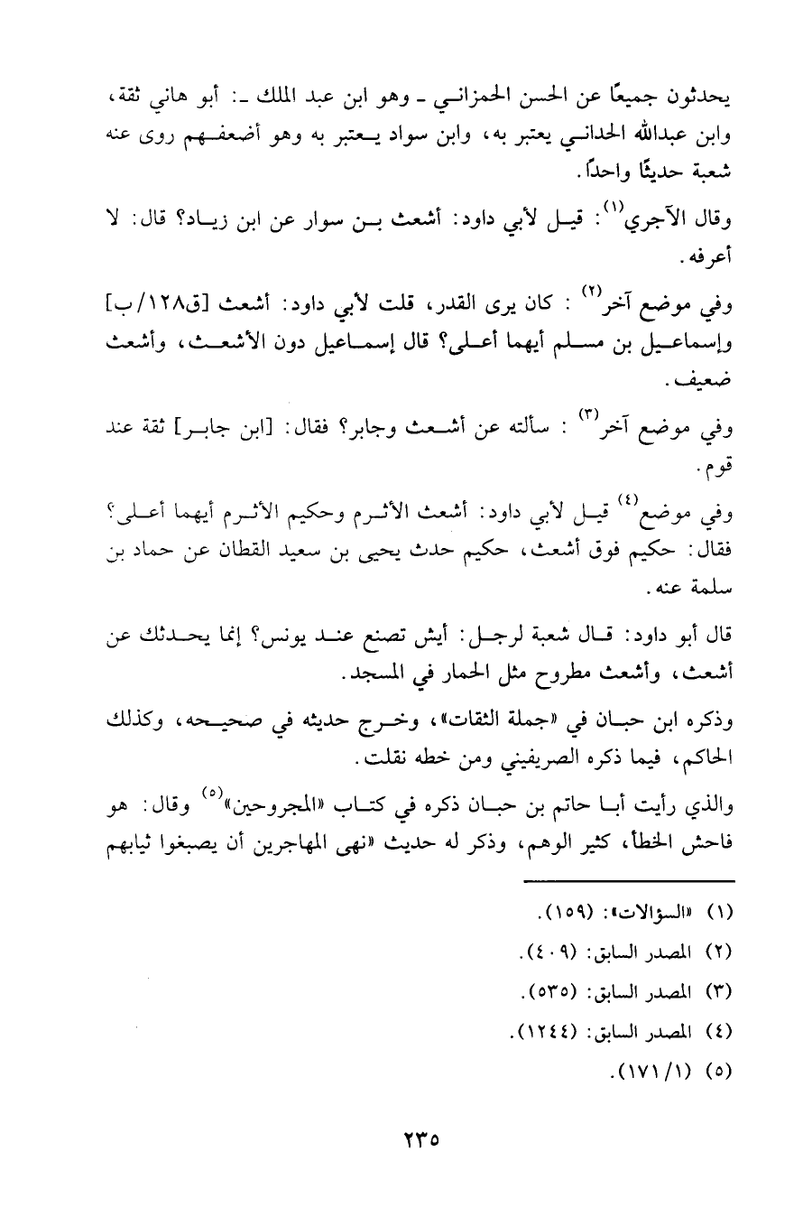 وفي موضع ( 4 ) قيل لأبي داود : أشعث الأثرم وحكيم الأثرم أيهما أعلى ؟