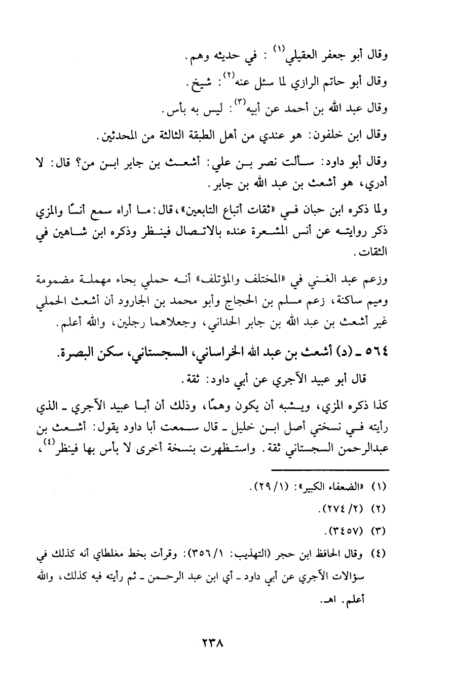 564 - ( د ) أشعث بن عبد الله الخراساني ، السجستاني ، سكن البصرة .