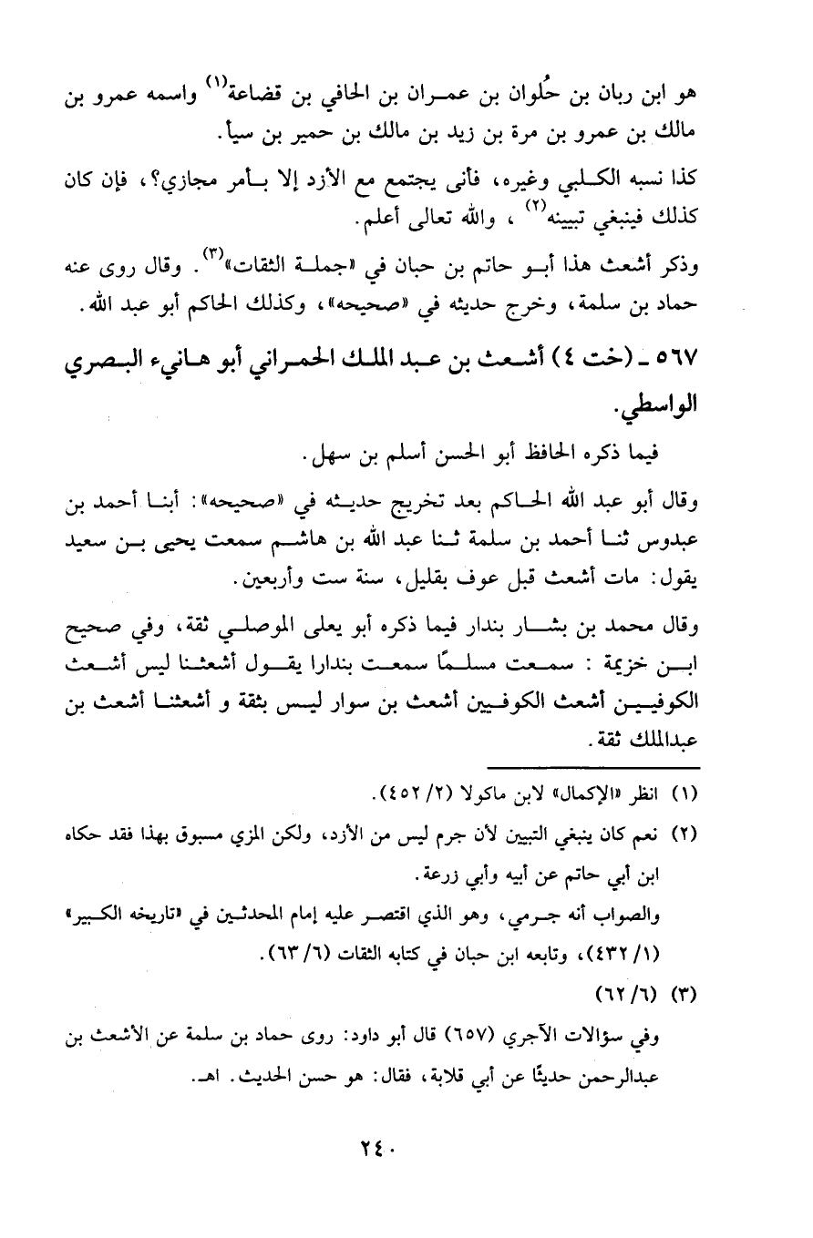 ( 1 / 432 ) ، وتابعه ابن في كتابه الثقات ( 6 / 63 ) .