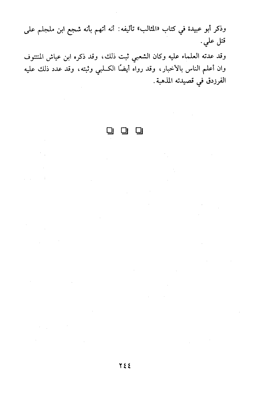 وذكر أبو عبيدة في كتاب ( المثالب ) تأليفه : أنه أتهم بأنه شجع ابن ملجم على