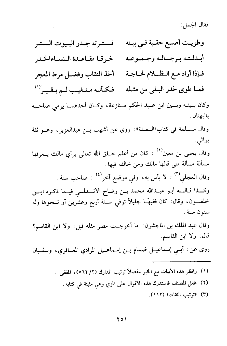 ( 1 ) وانظر هذه الأبيات مع الخبر مفصلا ترتيب المدارك ( 2 / 562 ) ، المقفى .
