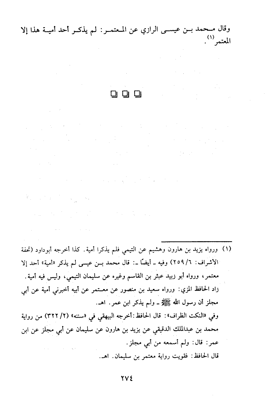 وقال محمد بن عيسى الرازي عن المعتمر : لم يذكر أحد أمية هذا إلا