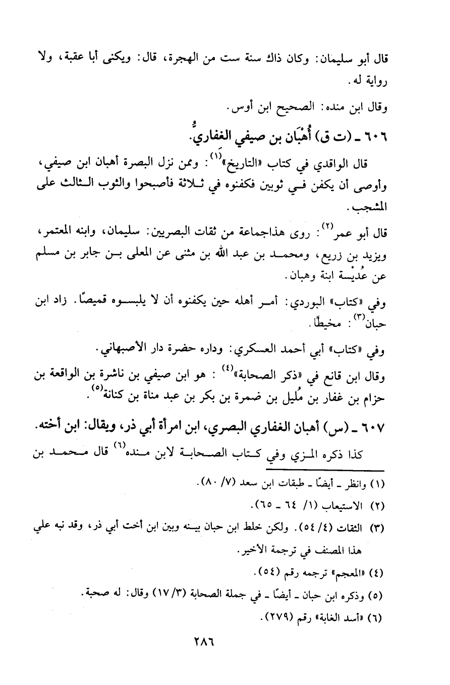 606 - ( ت ق ) أهبان بن صيفي الغفاري .