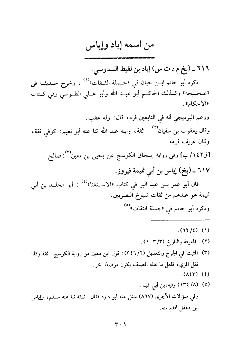 616 - ( بخ م د ت س ) إياد بن لقيط السدوسي .