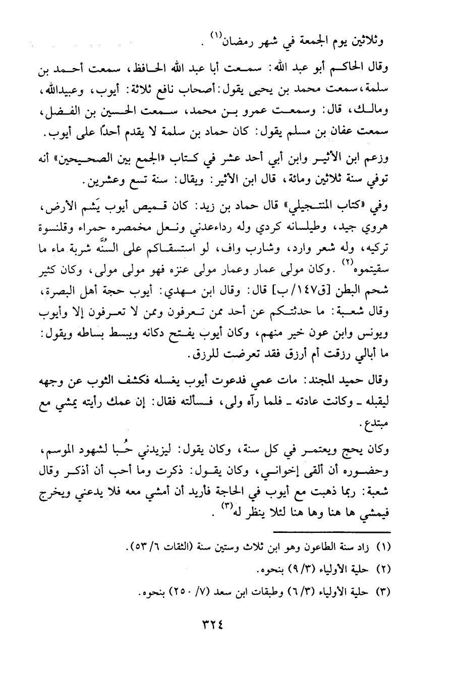 شحم البطن ( ق 147 / ب ) قال : وقال ابن مهدي : أيوب حجة أهل البصرة ،