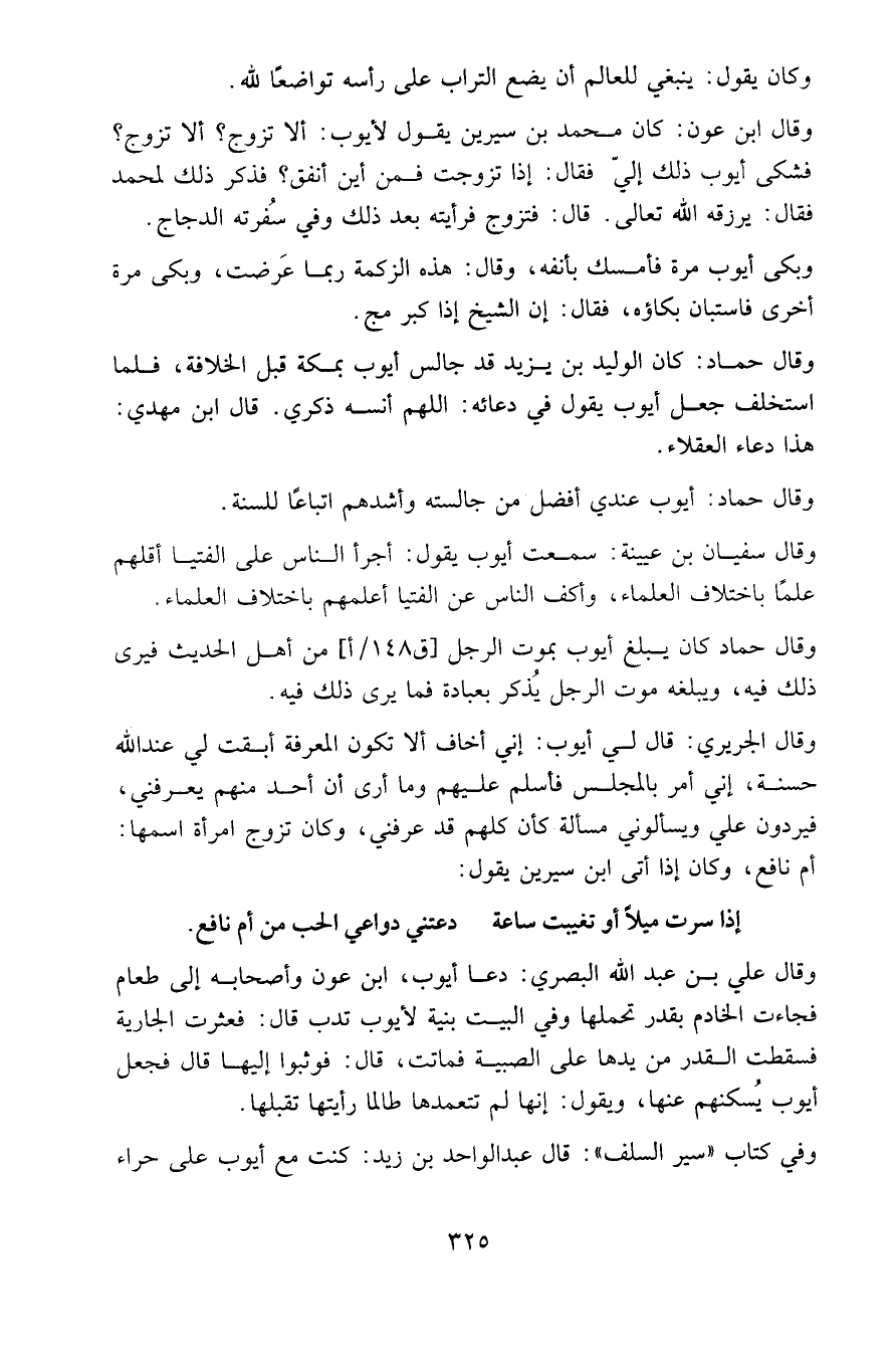 وقال حماد كان يبلغ أيوب بموت الرجل ( ق 148 / أ ) من أهل الحديث فيرى