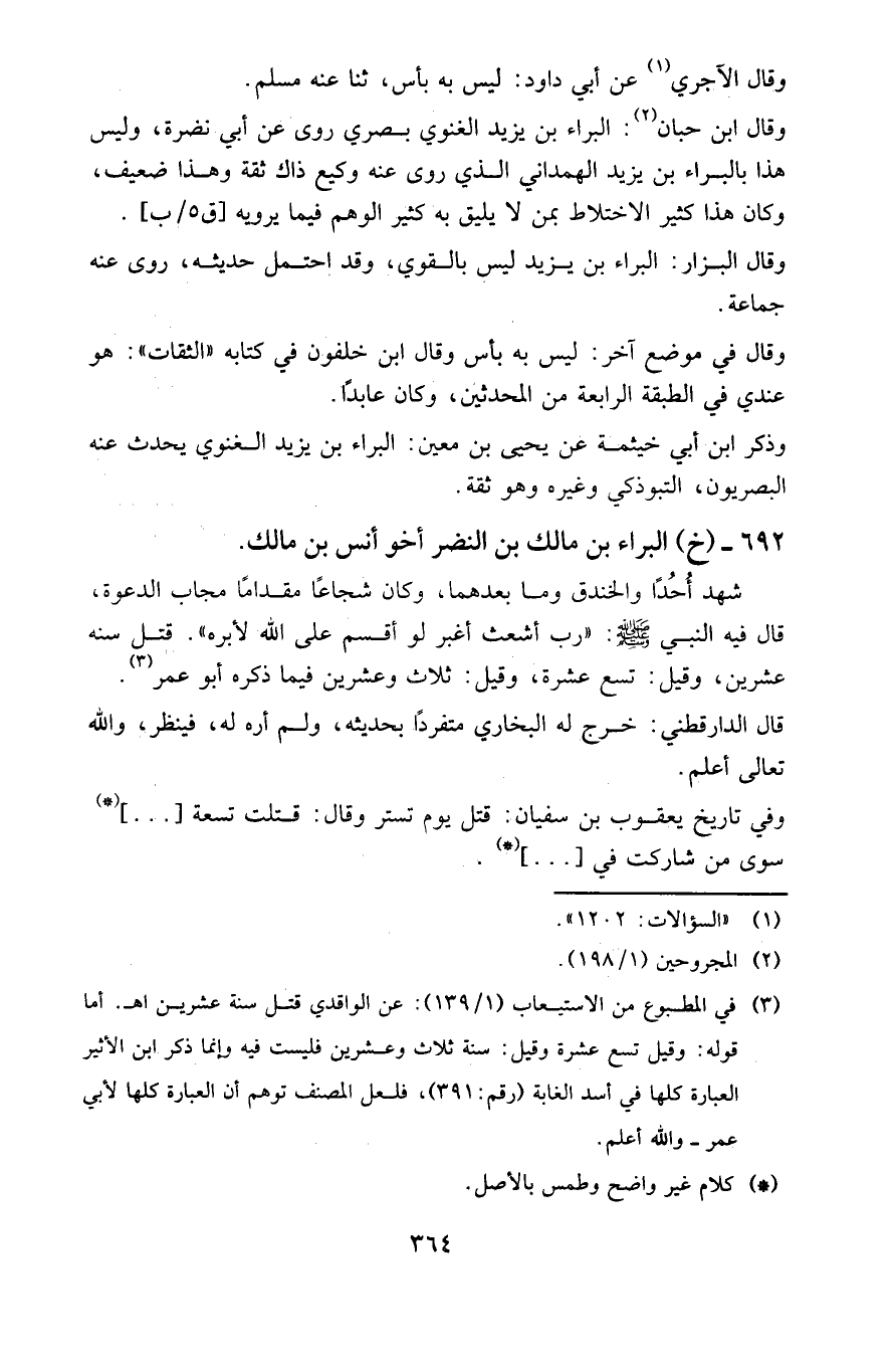 وقال ابن حبان ( 2 : البراء بن يزيد الغنوي بصري روى عن أبي نضرة ، وليس