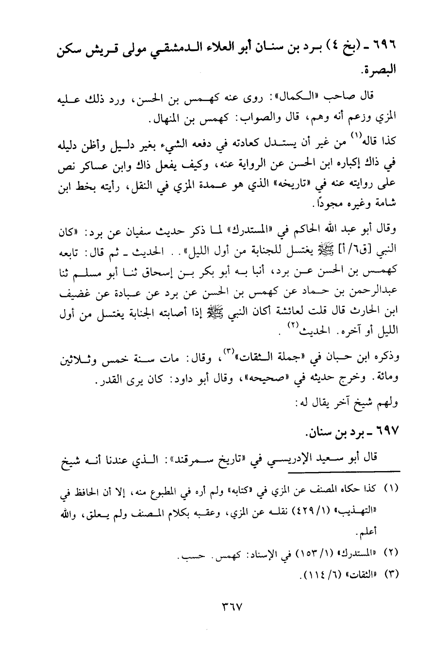 696 - ( بخ 4 ) برد بن سنان أبو العلاء الدمشقي مولى قريش سكن