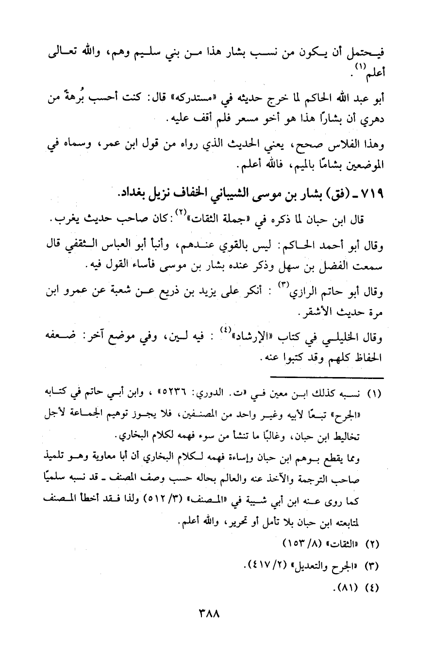 720 - ( فق ) بشار بن موسى الشيباني الخفاف نزيل بغداد .