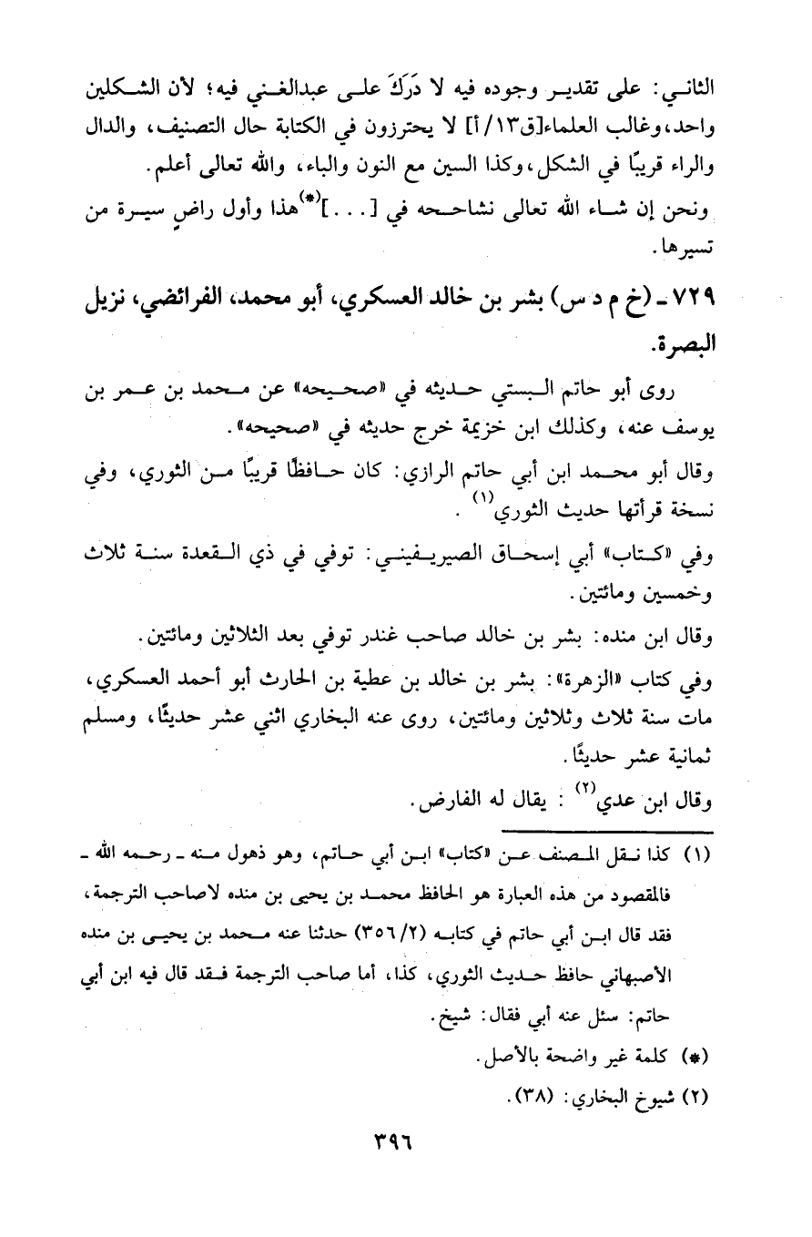 729 - ( خ م د س ) بشر بن خالد العسكري ، أبو محمد ، الفرائضي ، نزيل