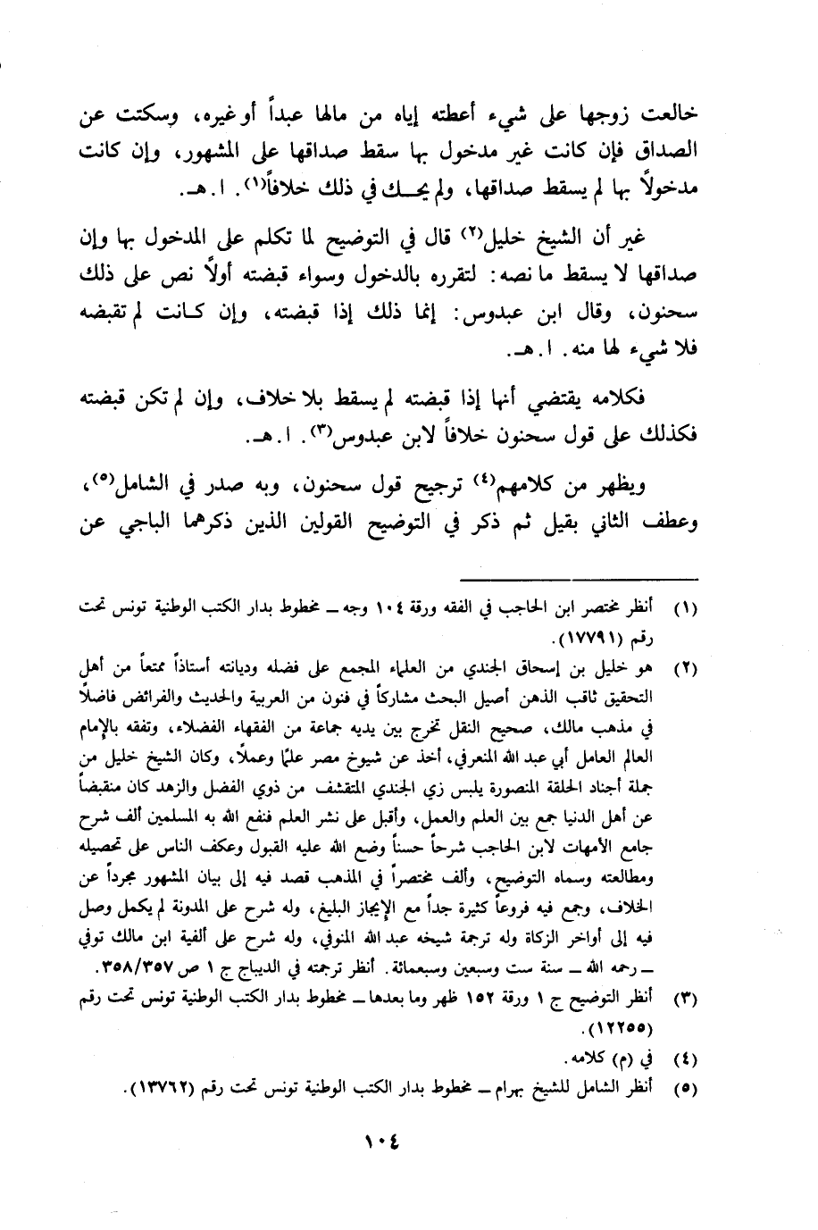 (¬1) انظر مختصر ابن الحاجب في الفقه ورقة 104 وجه مخطوط بدار الكتب الوطنية تونس تحت رقم 17791.