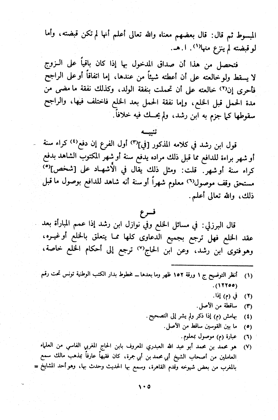 (¬1) انظر التوضيح جـ 1 ورقة 152 ظهر وما بعدها مخطوط بدار الكتب الوطنية تونس تحت رقم 12255.