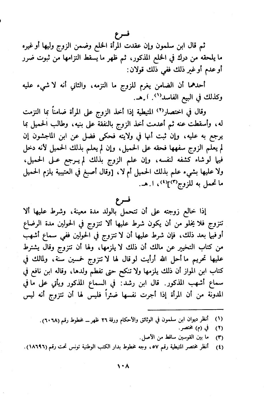 (¬4) انظر مختصر المتيطية ورقة 85 وجه مخطوط بدار الكتب الوطنية تونس تحت رقم 18696.