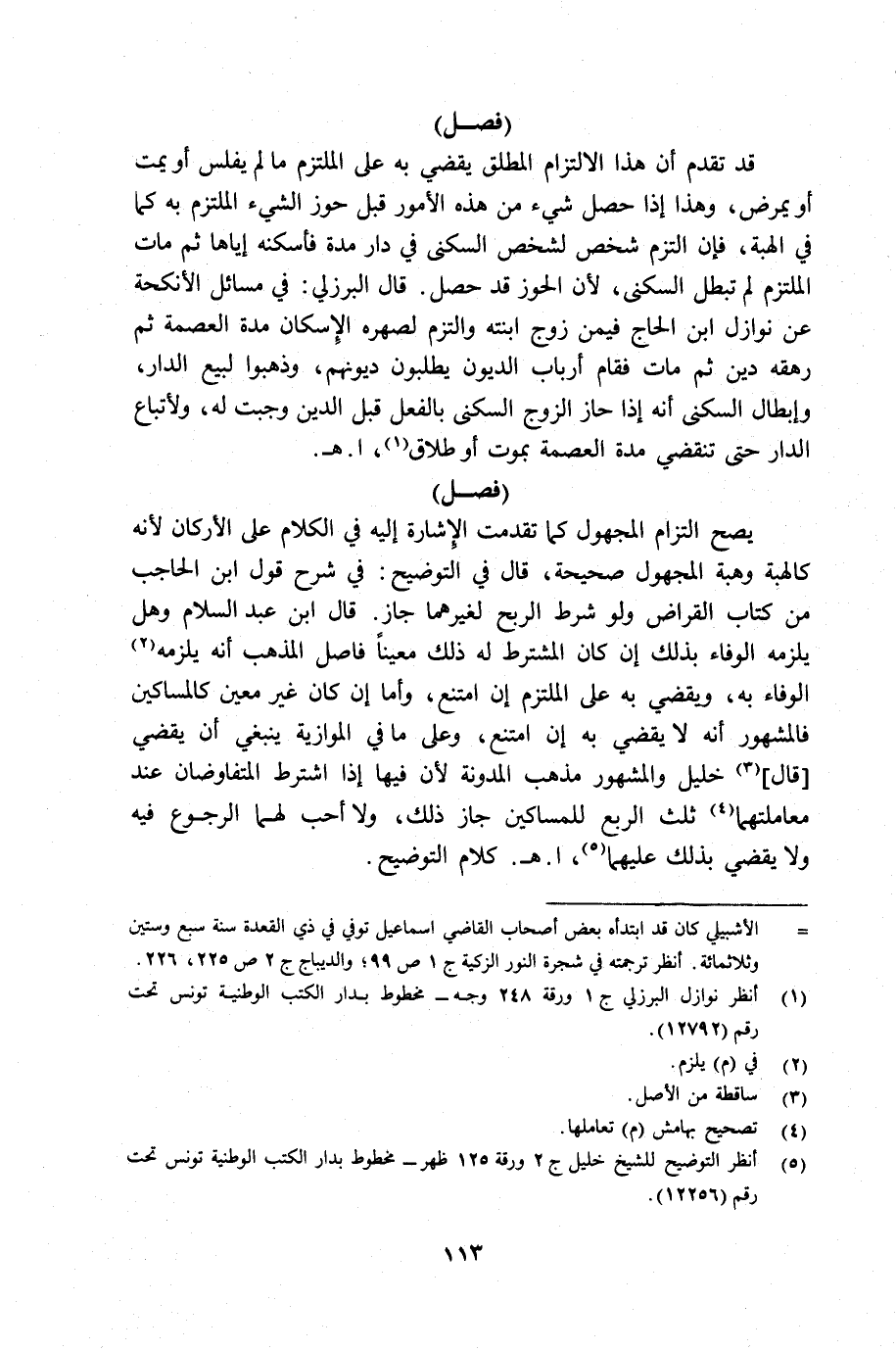 (¬5) انظر التوضيح للشيخ خليل جـ 2 ورقة 125 ظهر مخطوط بدار الكتب الوطنية تونس تحت رقم 12256.