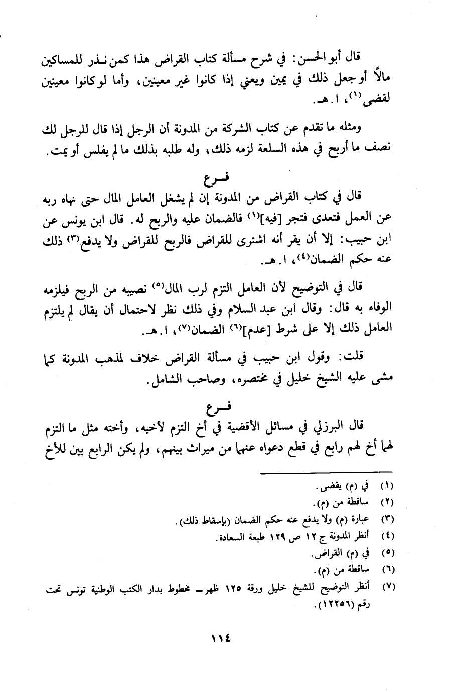 (¬7) انظر التوضيح للشيخ خليل ورقة 125 ظهر مخطوط بدار الكتب الوطنية تونس تحت رقم 12256.