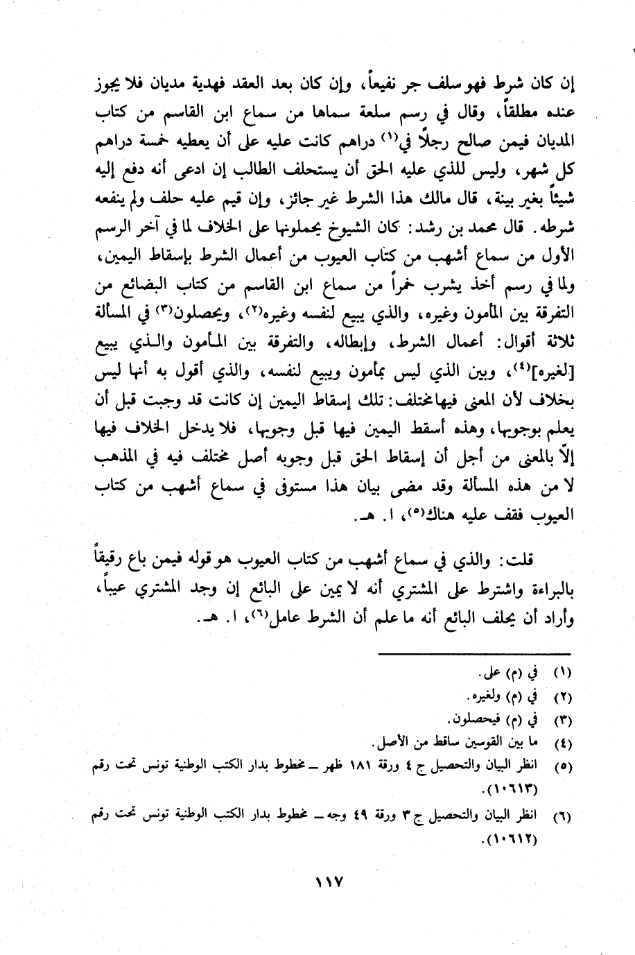 (¬5) انظر البيان والتحصيل جـ 4 ورقة 181 ظهر مخطوط بدار الكتب الوطنية تونس تحت رقم 10613.