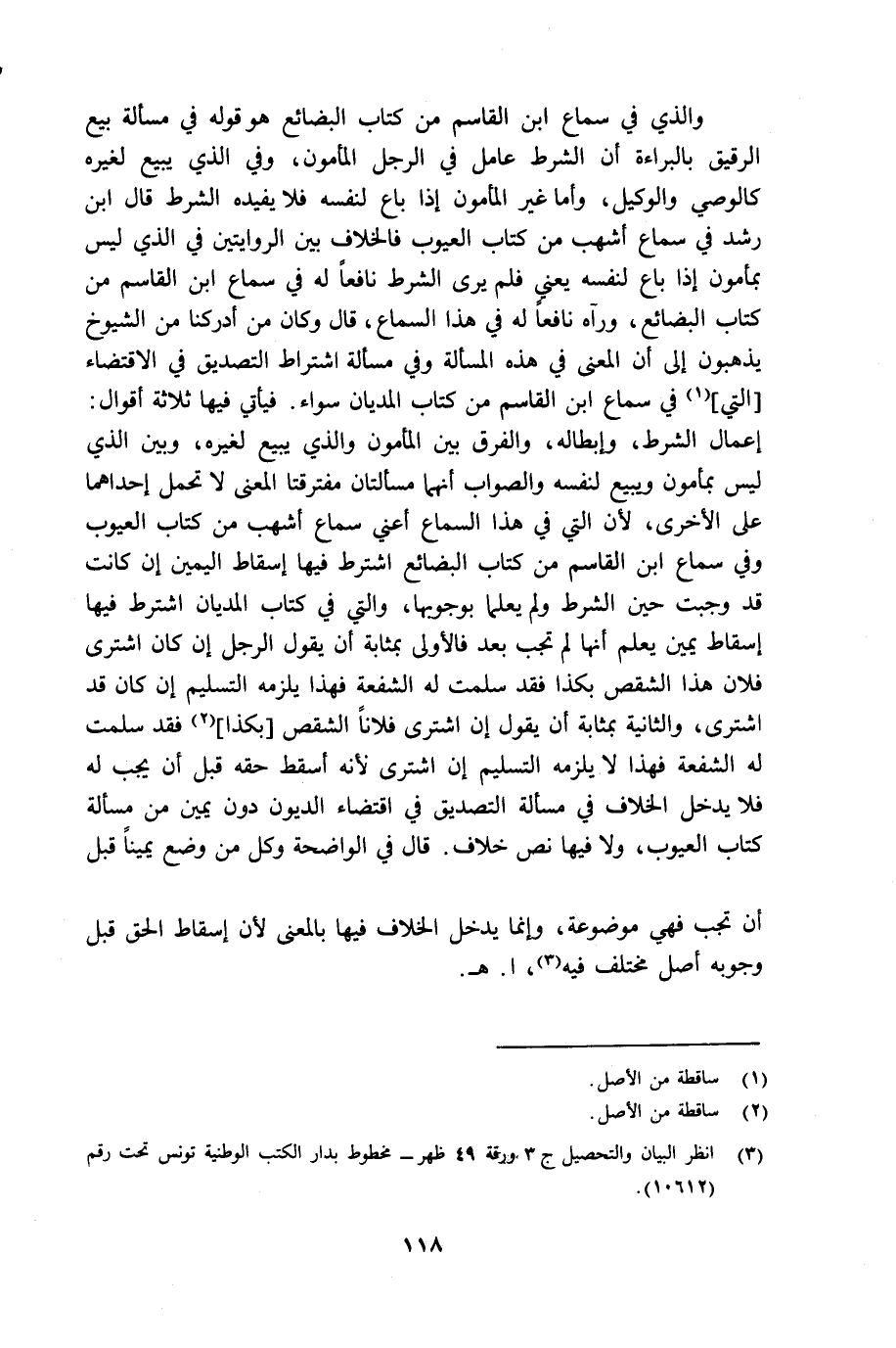 (¬3) انظر البيان والتحصيل جـ 3 ورقة 49 ظهر مخطوط بدار الكتب الوطنية تونس تحت رقم 10612.