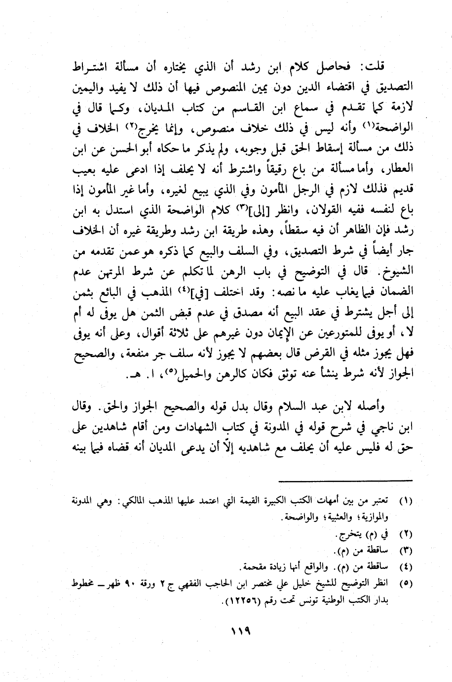 (¬5) انظر التوضيح للشيخ خليل علي مختصر ابن الحاجب الفقهي جـ 2 ورقة 90 ظهر مخطوط بدار الكتب الوطنية تونس تحت رقم 12256.