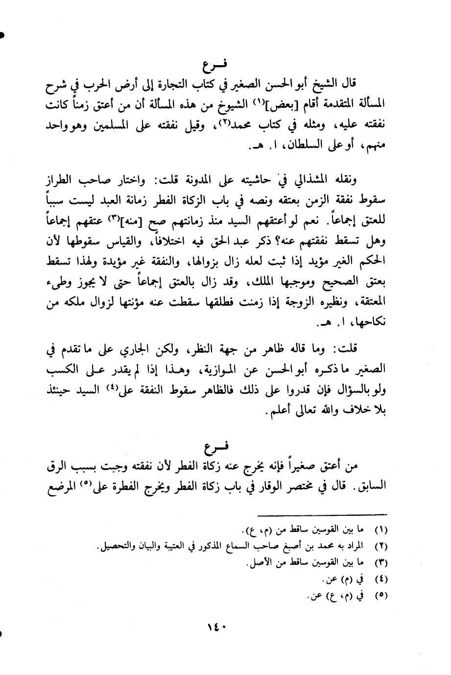 قلت: وما قاله ظاهر من جهة النظر، ولكن الجاري على ما تقدم في الصغير ما ذكره أبو الحسن عن الموازية، وهذا إذا لم يقدر على الكسب ولو بالسؤال فإن قدروا على ذلك فالظاهر سقوط النفقة على (¬4) السيد حينئذ بلا خلاف والله تعالى أعلم.