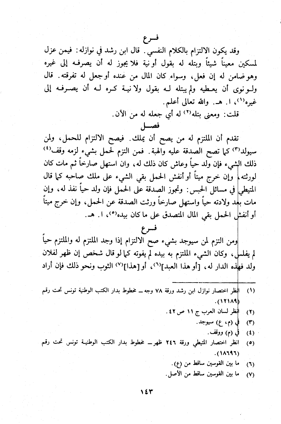 (¬1) انظر اختصار نوازل ابن رشد ورقة 78 وجه مخطوط بدار الكتب الوطنية تونس تحت رقم 12189.