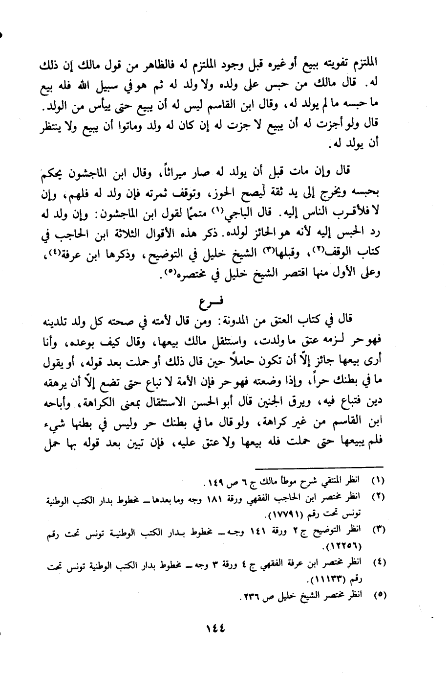 (¬2) انظر مختصر ابن الحاجب الفقهي ورقة 181 وجه وما بعدها مخطوط بدار الكتب الوطنية تونس تحت رقم 17791.