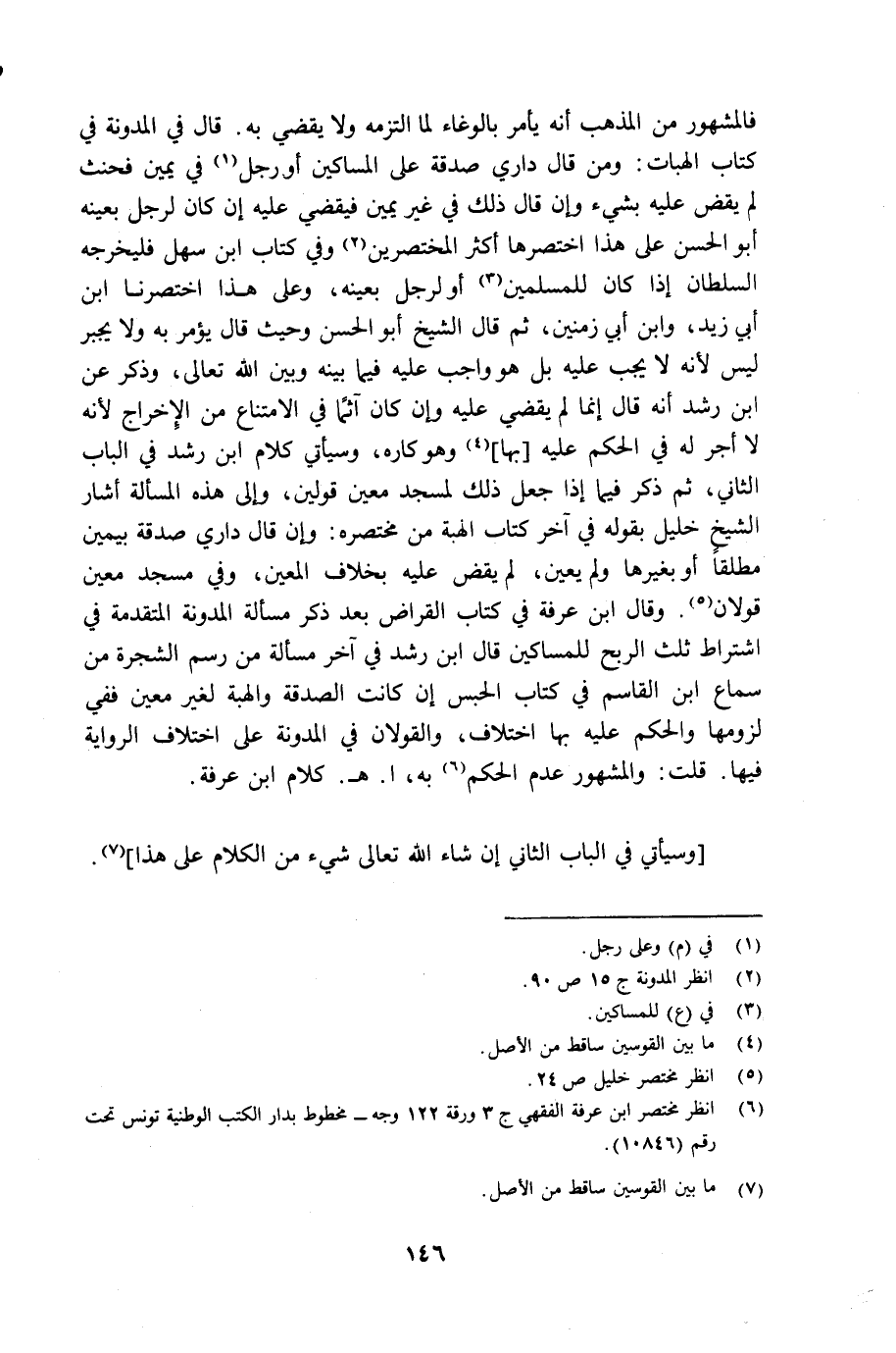 (¬6) انظر مختصر ابن عرفة الفقهي جـ 3 ورقة 122 وجه مخطوط بدار الكتب الوطنية تونس تحت رقم 10846.