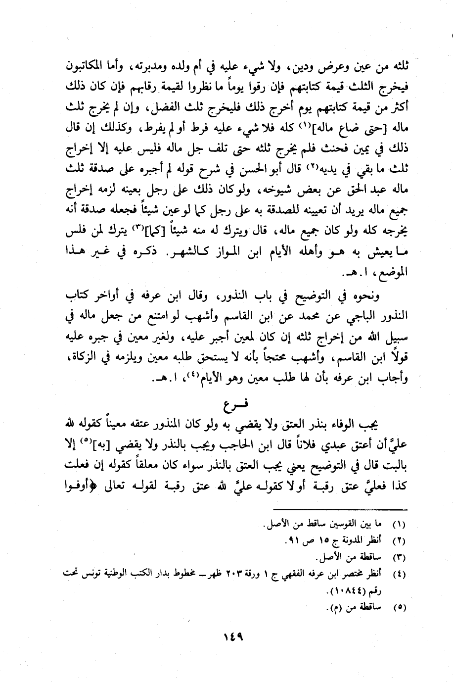 (¬4) انظر مختصر ابن عرفة الفقهي جـ 1 ورقة 203 ظهر مخطوط بدار الكتب الوطنية تونس تحت رقم 10844.