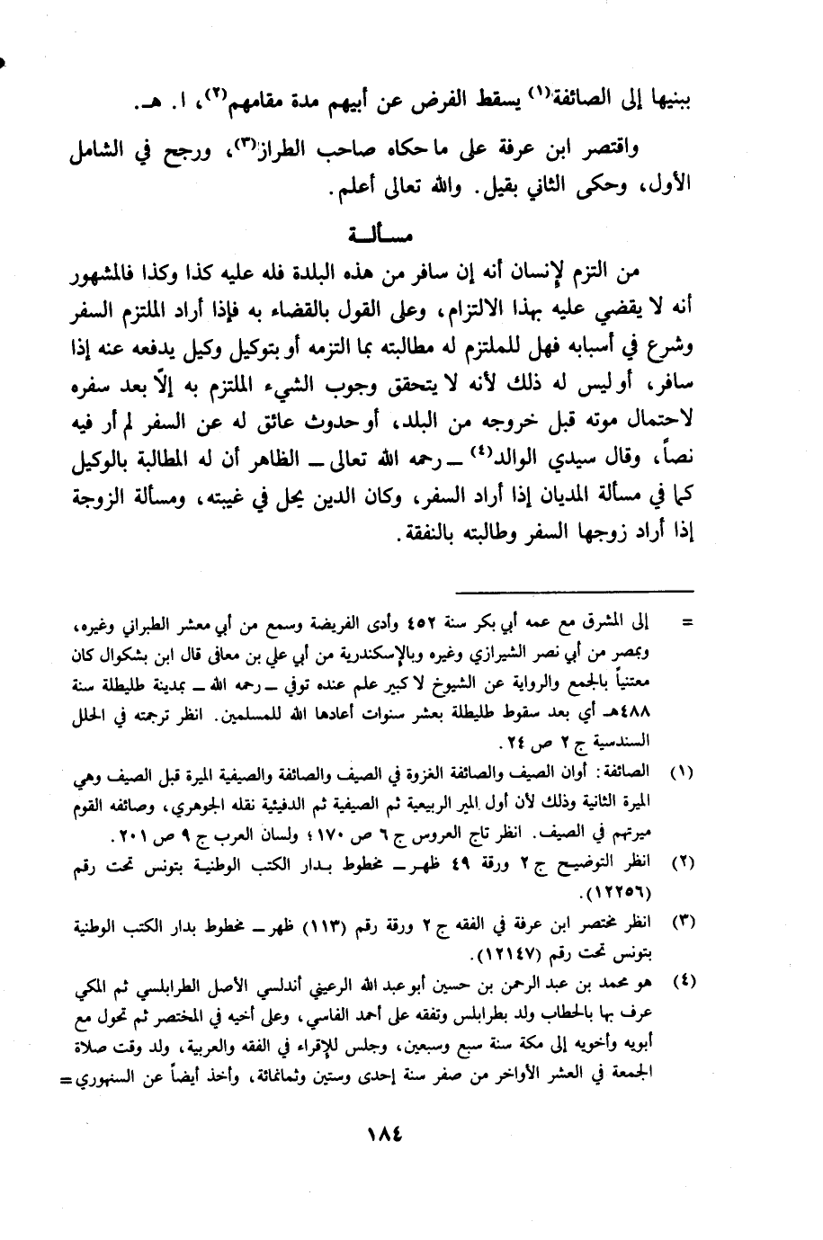 (¬3) أنظر مختصر ابن عرفة في الفقه جـ 2 ورقة رقم 113 ظهر مخطوط بدار الكتب الوطنية بتونس تحت رقم 12147.