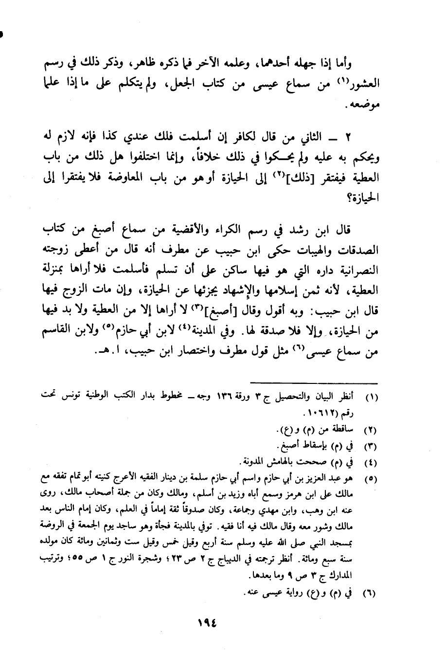 (¬1) أنظر البيان والتحصيل جـ 3 ورقة 136 وجه مخطوط بدار الكتب الوطنية تونس تحت رقم 10612.