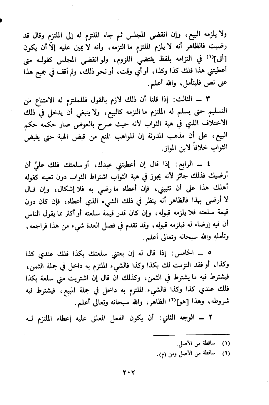 (3) الثالث: إذا قلنا إن ذلك لازم بالقول فللملتزم له الامتناع من التسليم حتى يسلم له الملتزم ما إلتزمه كالبيع، ولا ينبغي أن يدخل في ذلك الإختلاف الذي في هبة الثواب لأنه حيث صرح بالعوض صار حكمه حكم البيعن على ان مذهب المدونة أن للواهب المنع من قبض الهبة حتى يقبض الثواب خلافاً لابن المواز.