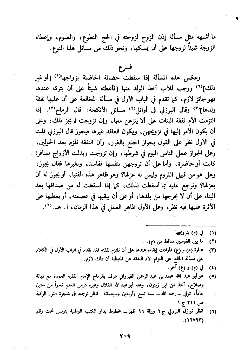 (¬6) أنظر نوازل البرزلي جـ 2 ورقة 16 ظهر مخطوط بدار الكتب الوطنة بتونس تحت رقم 12793.