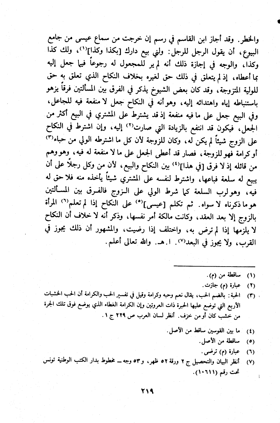 (¬7) أنظر البيان والتحصيل جـ 2 ورقة 52 ظهر و 53 وجه مخطوط بدار الكتب الوطنية تونس تحت رقم 10611.