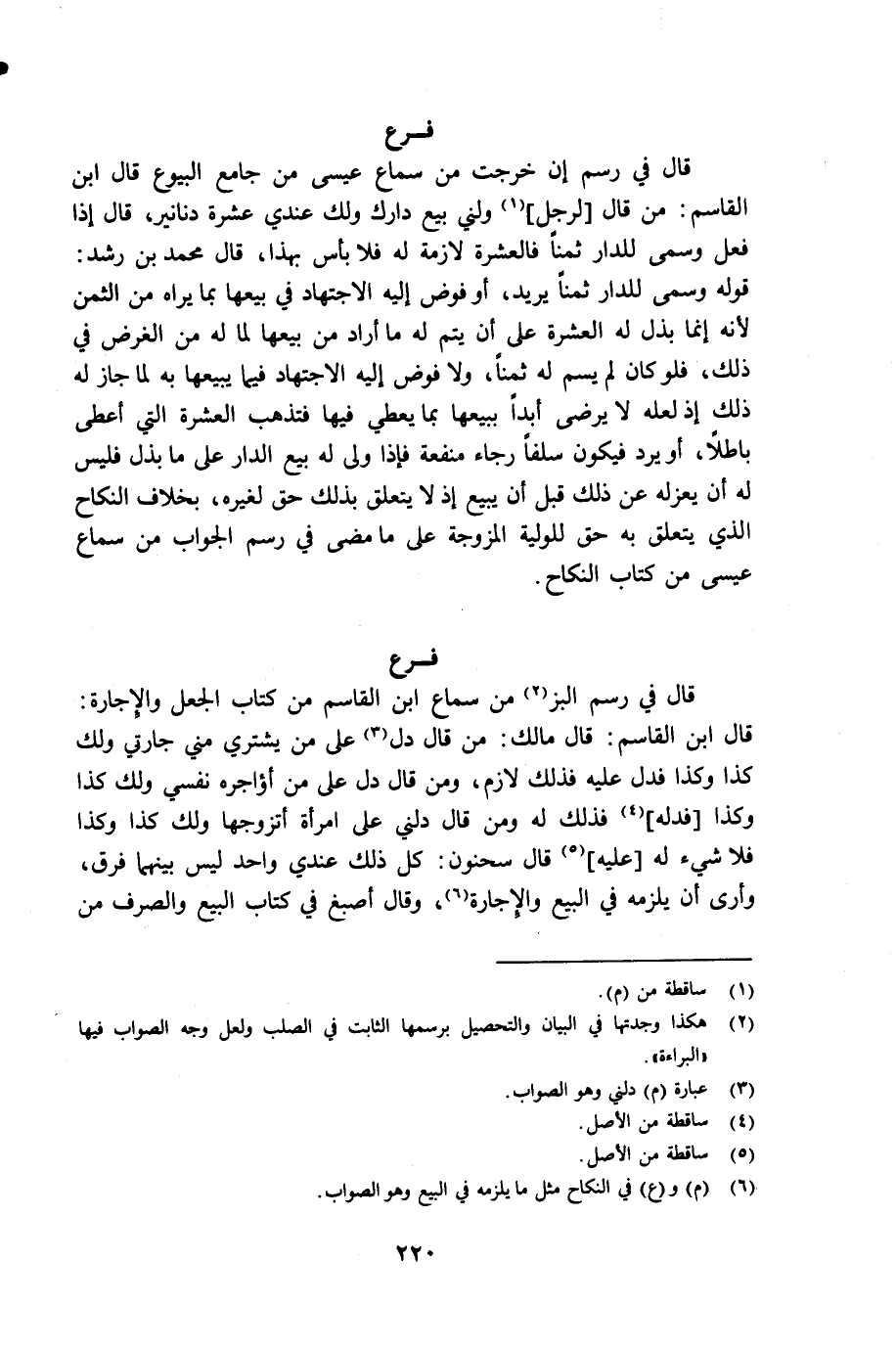 (¬2) هكذا وجدتها في البيان والتحصيل برسمها الثابت في الصلب ولعل وجه الصواب فيها "البراءة".