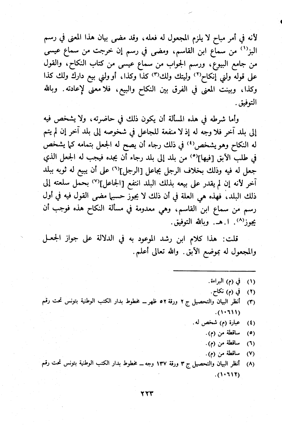 (¬8) أنظر البيان والتحصيل جـ 3 ورقة 137 وجه مخطوط بدار الكتب الوطنية بتونس تحت رقم 10612.