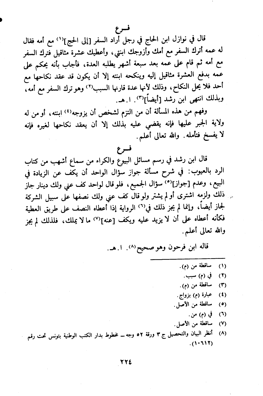 (¬8) أنظر البيان والتحصيل جـ 3 ورقة 52 وجه مخطوط بدار الكتب الوطنية بتونس تحت رقم 10612.