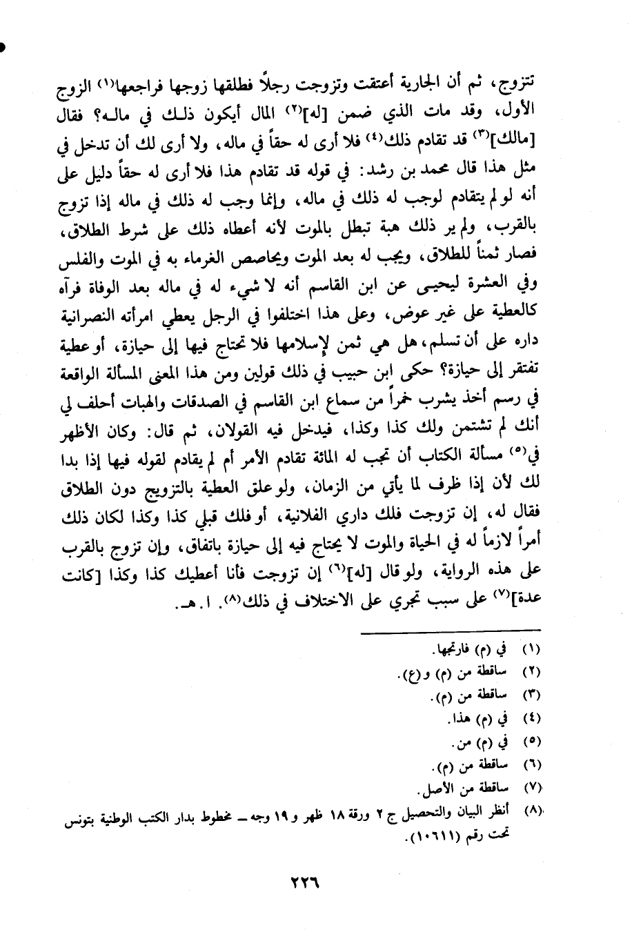 (¬8) أنظر البيان والتحصيل جـ 2 ورقة 18 و 19 وجه مخطوط بدار الكتب الوطنية بتونس تحت رقم 10611.