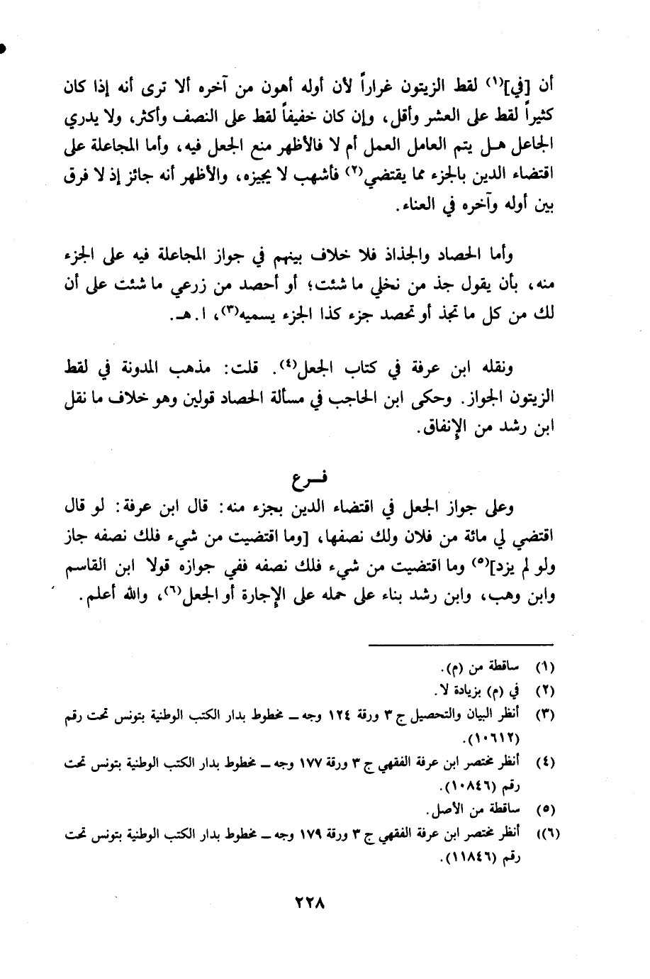(¬6) أنظر مختصر ابن عرفه الفقهي جـ 3 ورقة 179 وجه مخطوط بدار الكتب الوطنية تونس تحت رقم 11846.