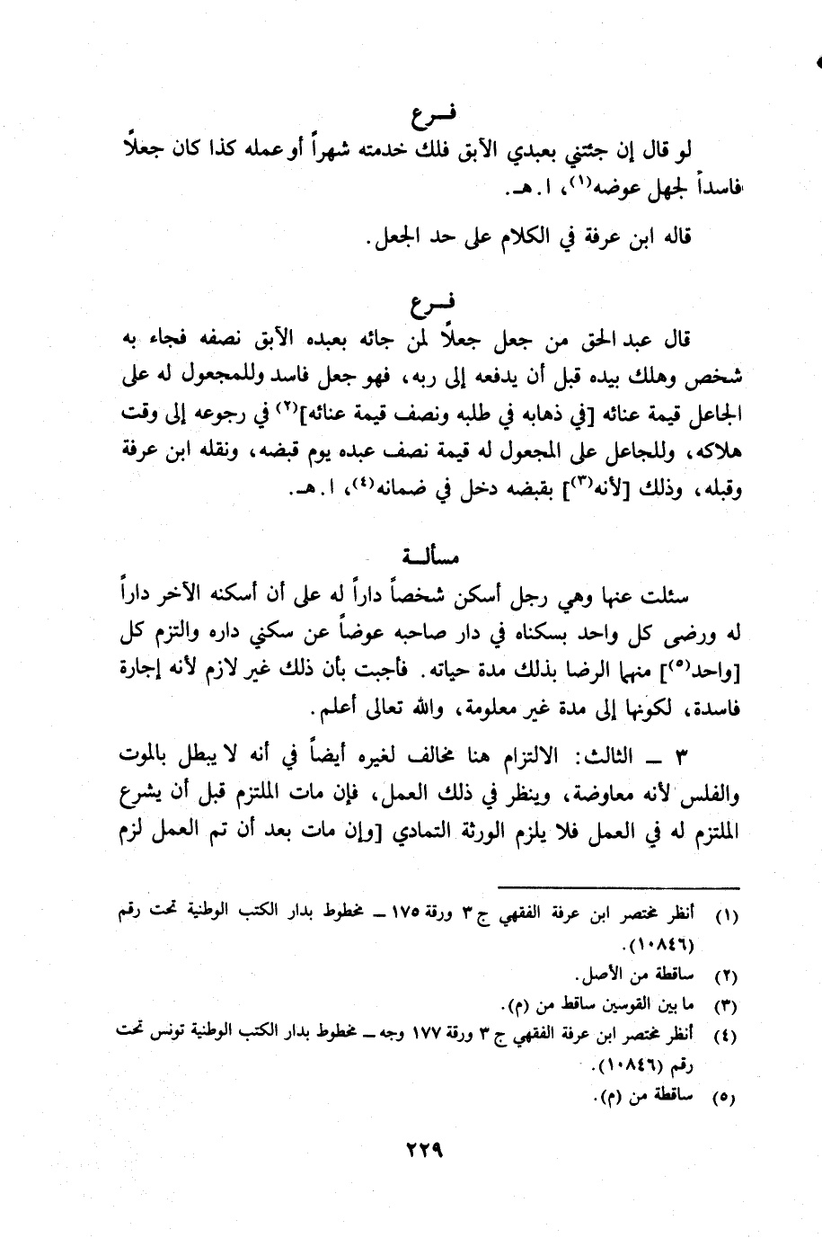 (¬4) أنظر مختصر ابن عرفه الفقهي جـ 3 ورقة 177 وجه مخطوط بدار الكتب الوطنية تونس تحت رقم 10846.