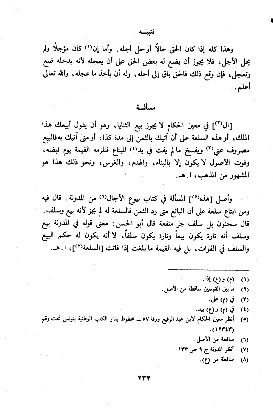 (¬7) أنظر المدونة جـ 9 ص 133.