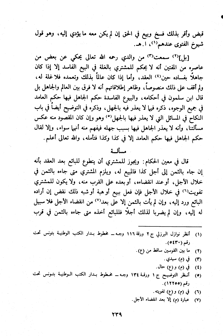 (¬1) أنظر نوازل البرزلي جـ 2 ورقة 116 وجه مخطوط بدار الكتب الوطنية بتونس تحت رقم 5430.