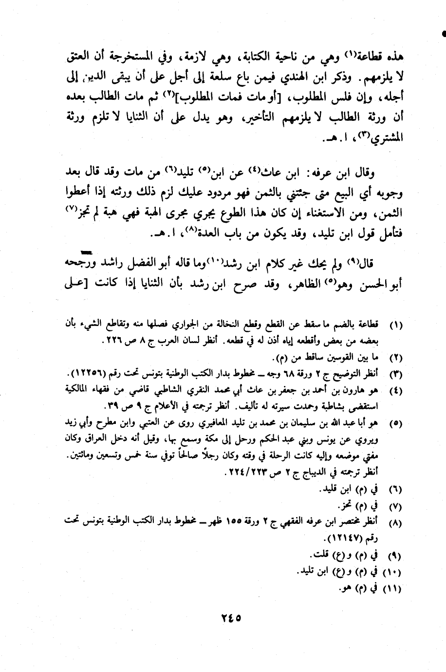 (¬8) أنظر مختصر ابن عرفه الفقهي جـ 2 ورقة 155 ظهر وخطوط بدار الكتب الوطنية بتونس تحت رقم 12147.