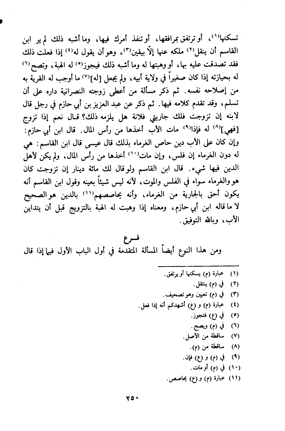 تسكنها (¬1)، أو ترتقق بمرافقها، أو تنفذ أمرك فيها، وما أشبه ذلك لم ير ابن القاسم أن ينقل (¬2) ملكه عنها إلا بيقين (¬3)، وهو أن يقول له (¬4) إذا فعلت ذلك فقد تصدقت عليه بها، أو وهبتها له وما أشبه ذلك فيجوز (¬5) له الهبة، وتصح (¬6) له بحيازته إذا كان صغيراً في ولاية أبيه، ولم يجعل [له] (¬7) ما أوجب له القرية به من اصلاحه نفسه، وتعلمه القرآن عوضاً لها فتمضي له دون حيازة، وفي ذلك اختلاف. ثم ذكر مسألة من أعطى زوجته النصرانية داره على أن تسلم، وقد تقدم كلامه فيها. ثم ذكر عن عبد العزيز بن أبي حازم في رجل قال لابنه إن تزوجت فلك جاريتي فلانه هل يلزمه ذلك قال نعم إذا تزوج [فهي] (¬8) له فإذا (¬9) مات الأب أخذها من رأس المال. قال ابن أبي حازم: وإن كان على الأب دين خاص الغرماء بذلك قال عيسى قال ابن القاسم: هي له دون الغرماء إن فلس، وإن مات (¬10) أخذها من رأس المال، ولم يكن لأهل الدين فيها شيء. قال ابن القاسم ولو قال لك مائة دينار إن تزوجت كان هو والغرماء سواء في الفلس والموت، لأنه ليس شيئاً بعينه وقول ابن القاسم أنه يكون أحق بالجارية من الغرماء، وأنه يحاصصهم (¬11) بالدين هو الصحيح لا ما قاله ابن أبي حازم، ومعناه إذا وهبت له الهبة بالتزويج قبل أن يتداين الأب، وبالله التوفيق.